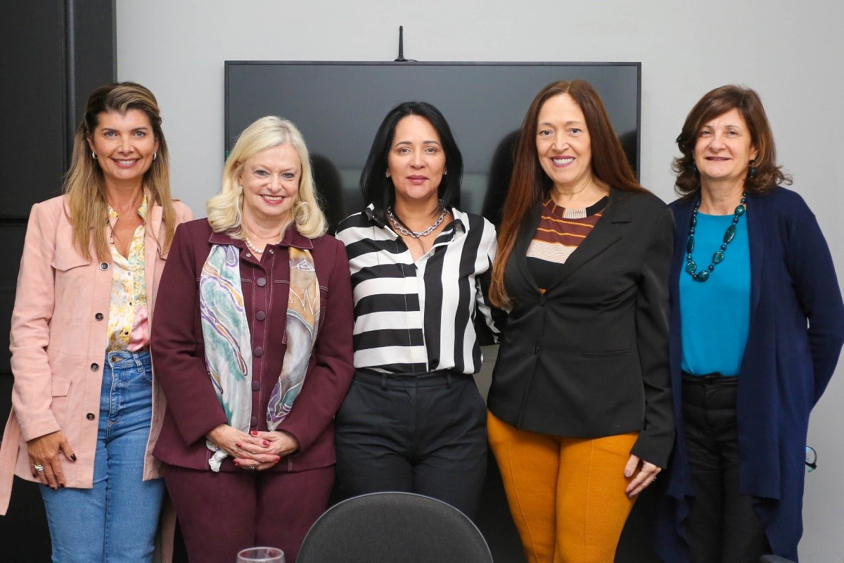 Deise Duque-Estrada, Laura Laganá, Cristiane Freitas, Marisa Souza e Berenice Giannella durante encontro no Palácio dos Bandeirantes. Foto: Marcelo Camargo/Governo do Estado de SP