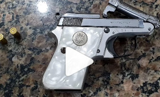 Pistola Beretta 635 apreendida na ocorrência é produto de furto. Foto: Divulgação / PM-SP