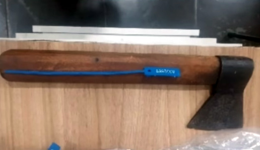 Ao chegar ao local, a equipe realizou entrevistas com as vítimas, constatando que as duas mulheres haviam solicitado uma medida protetiva contra um dos indiciados. Uma das vítimas identificou os autores e informou que eles deixaram o local em um veículo Ford Fiesta, cor verde. A equipe abordou o veículo cerca de 150 metros do local da ocorrência com dois indivíduos e encontrou uma faca com bainha e uma machadinha no assoalho.