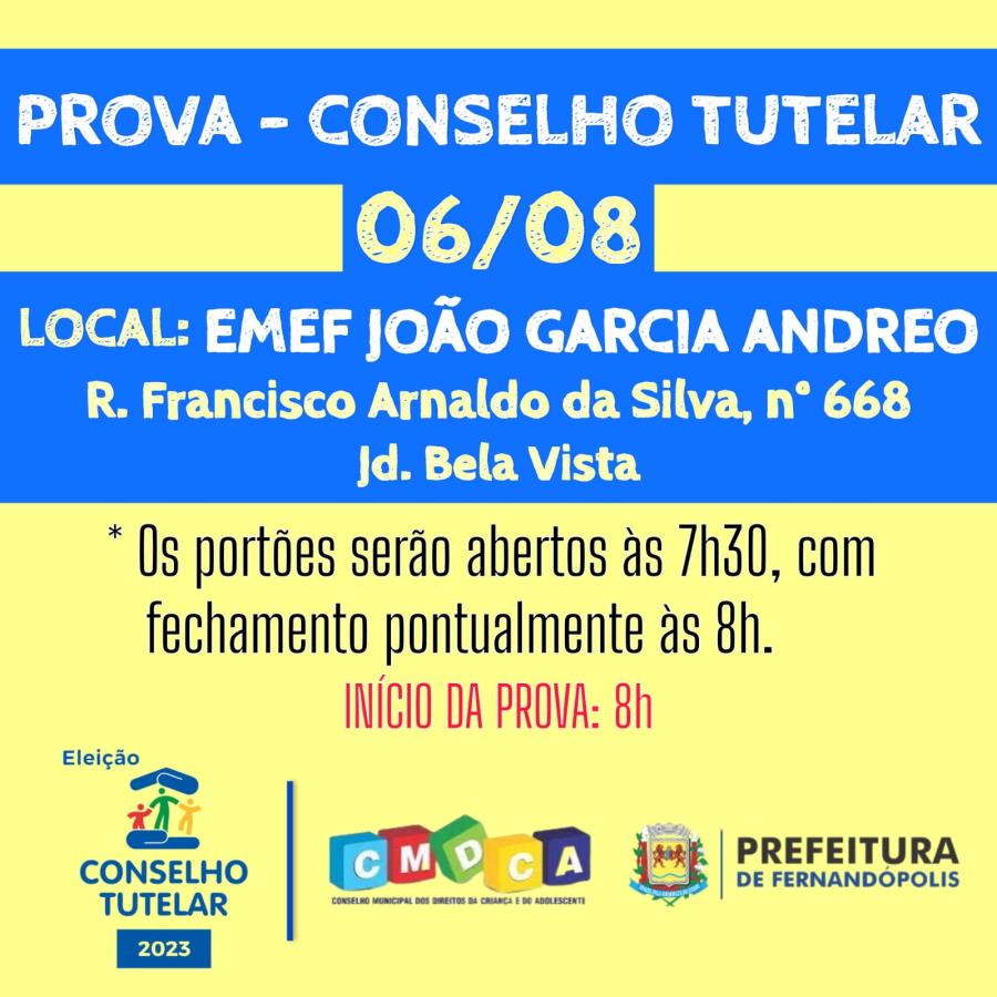 Prova do Conselho Tutelar acontece no próximo domingo, 06, na escola Andreo