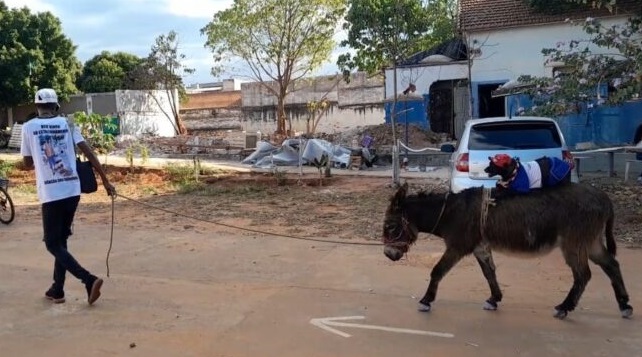 Cachorra Neguinha pegando carona no burrinho Lázaro viraliza nas redes sociais