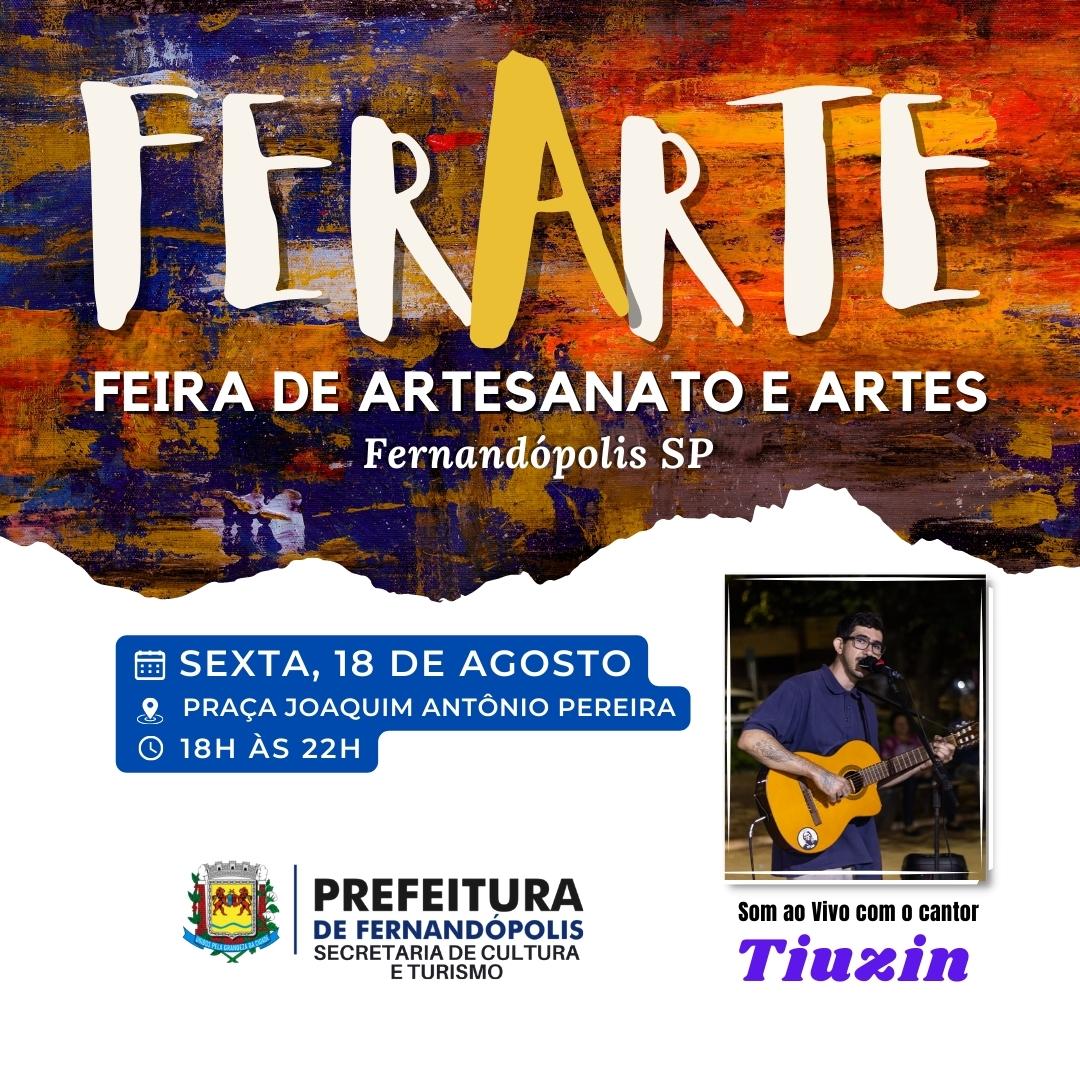 A FerArte, um dos mais inovadores projetos culturais realizados pela Prefeitura de Fernandópolis, por meio as Secretaria Municipal de Cultura e Turismo, acontece em mais uma edição na próxima sexta-feira, dia 18, proporcionando um ambiente de lazer oferecido a todas às famílias.