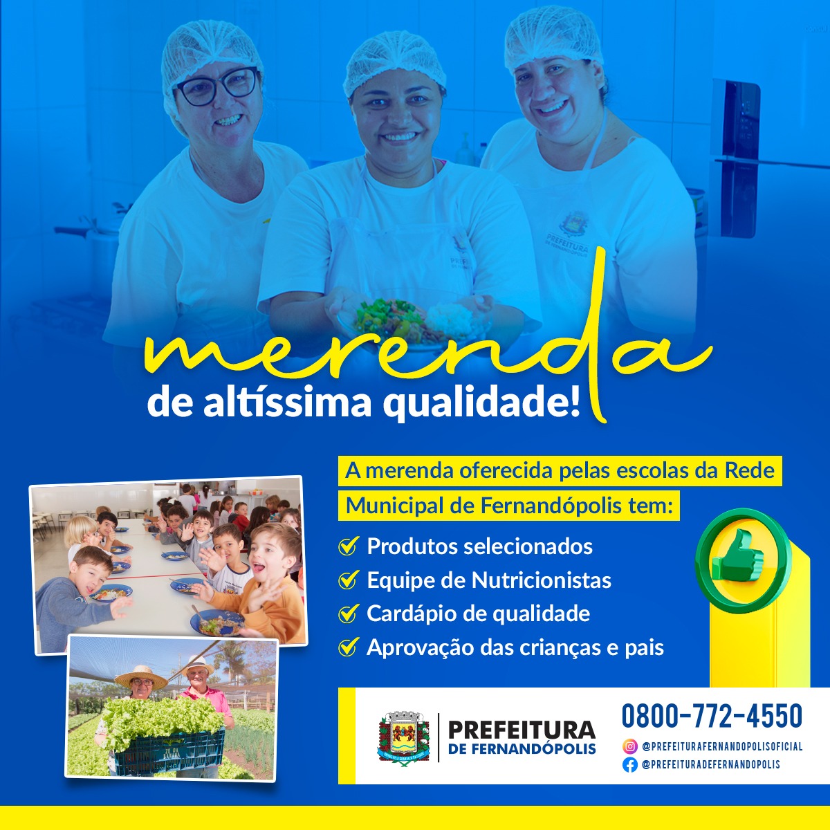 “A merenda das nossas escolas é de altíssima qualidade, preparada por uma equipe de grandes profissionais, desde sua elaboração até o momento em que chega no prato das crianças tudo é feito com muito amor e carinho”, explanou a secretária municipal de Educação, Lucimara Rossato.
