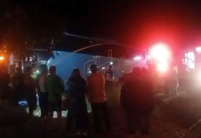 Passageiros do ônibus no local do acidente. Foto: Reprodução / Facebook