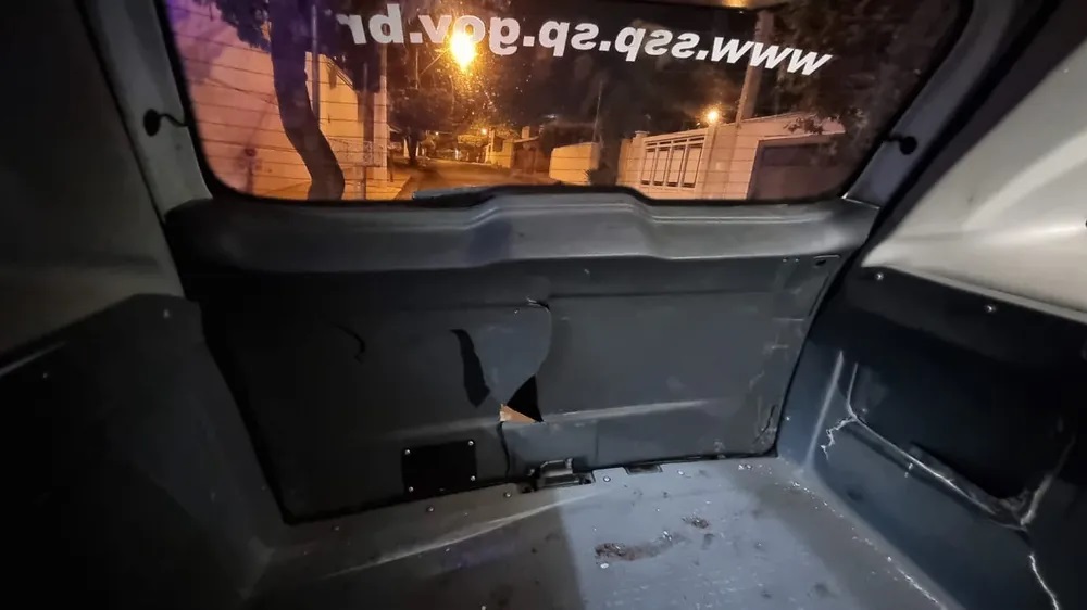 Interior de viatura da Polícia Militar danificada pelo acusado. Foto: Divulgação / PM-SP