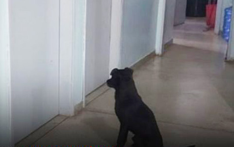 Cãozinho aguardando a tutora sair de consulta médica. Foto: Reprodução / Facebook