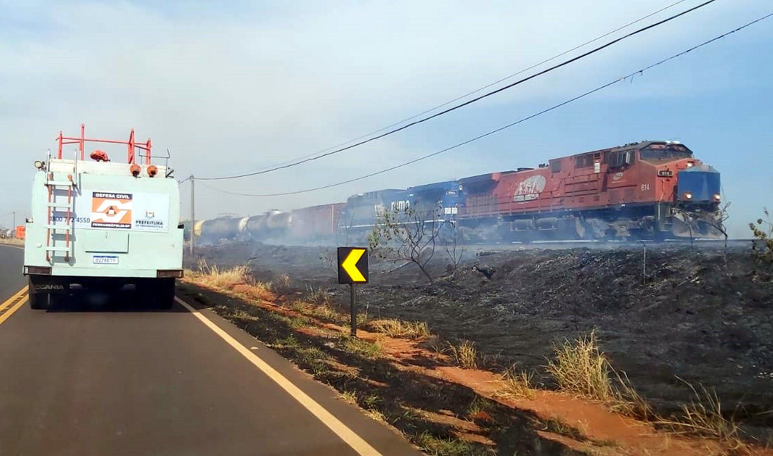 Bombeiros e Defesa Civil controlam grande incêndio as margens da linha férrea