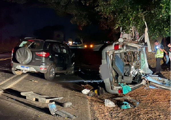 O acidente envolveu dois veículos da marca Ford, modelo EcoSport, sendo que um deles (de cor preta) tentou desviar de um animal que cruzava a pista, perdeu o controle e colidiu com o outro (de cor prata), ocupado por três pessoas.
