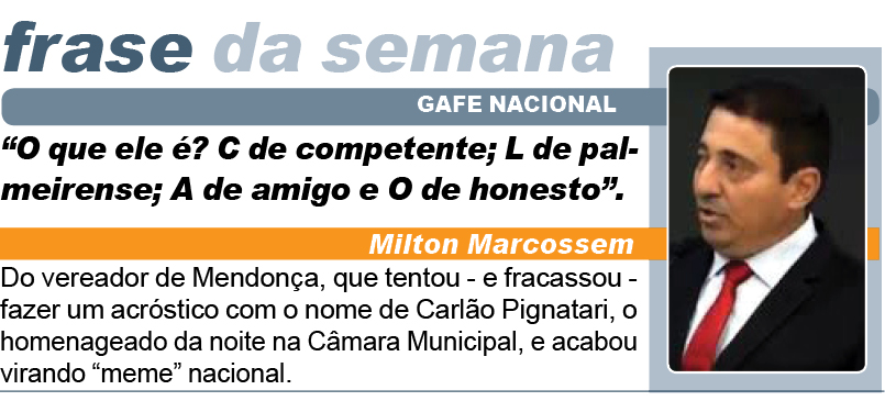 Há! E por falar em prévias, eis que uma recém-conclusa realizada sob encomenda pelo Departamento de Pesquisas de Opinião Pública deste ‘O Extra’, com abundância qualitativa e quantitativa, apontou resultados e projeções que certamente ‘apimentam’ as composições e mostra os ‘pesos’ de cada qual dos nomes (tanto na intenção de votos como na rejeição). Além, obviamente, da avaliação do atual governo André Pessuto e o índice de transferibilidade de votos que o alcaide atualmente ostenta.