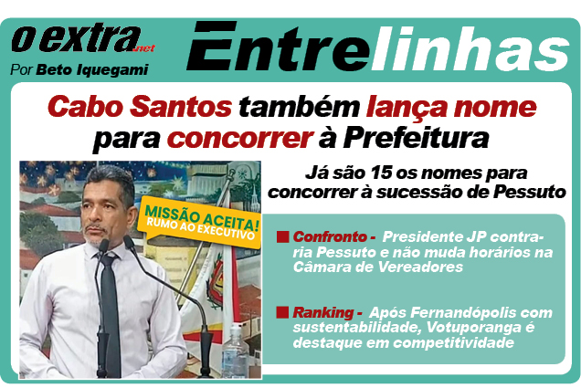 Com essas palavras, textualmente, o atual vereador Cabo Santos (SD) lançou seu nome para concorrer à sucessão de André Pessuto (UB) no próximo ano, através de publicação em suas redes sociais na manhã da última quinta-feira, 24/08/2023.