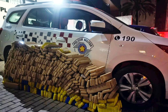 Apreensão superou os 300 kg de drogas. Foto: Divulgação / PM-SP