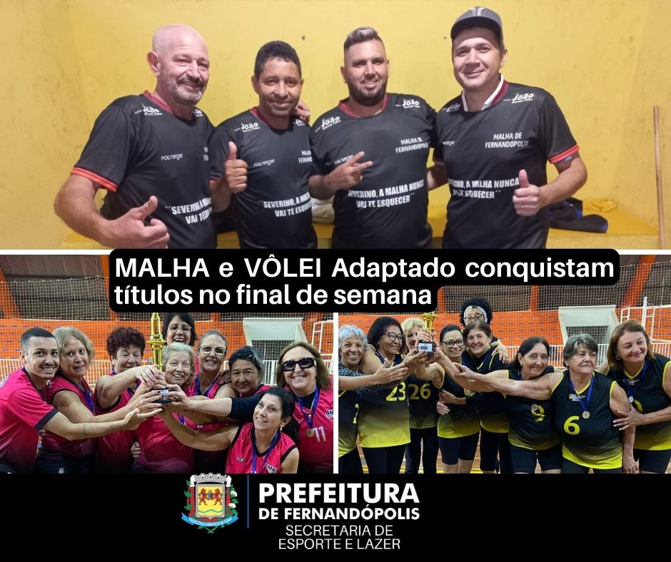 As equipes fernandopolenses de Malha e Vôlei Adaptado conquistaram títulos neste final de semana, em torneios disputados pela região. O time de Malha, jogando na cidade de Castilho, com os atletas Paulinho, Antônio, Valdemar e Marcinho, conquistaram o Torneio Interestadual. A competição reuniu dezenas de equipes de várias regiões do estado de São Paulo.