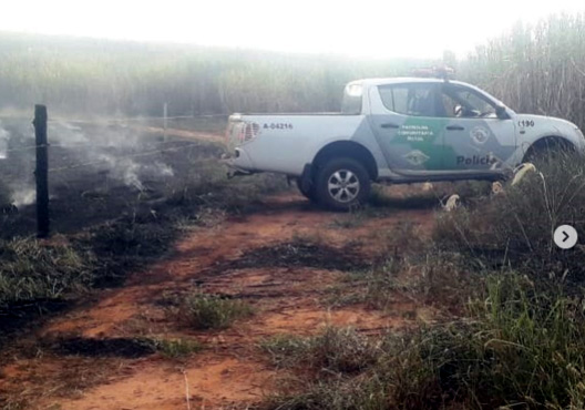Durante policiamento na área rural do município de Turmalina/SP, Policiais Militares do 4º Batalhão de Polícia Ambiental depararam-se com um incêndio acontecendo em uma propriedade, sendo no momento combatido por alguns caminhões pipa.