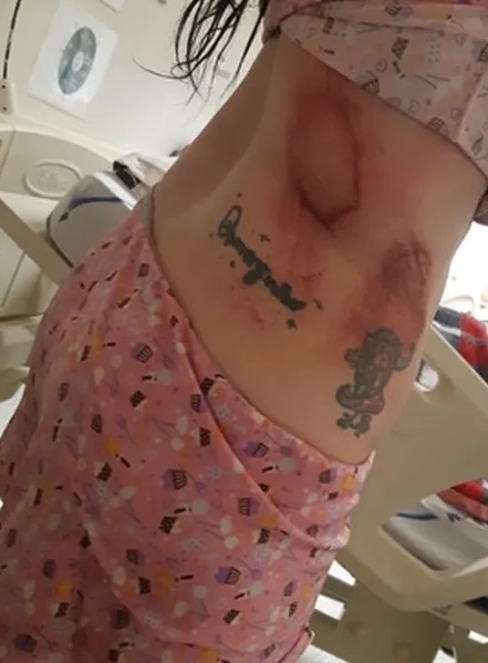 Parte das lesões na vítima internada no HB. Foto: Arquivo Pessoal