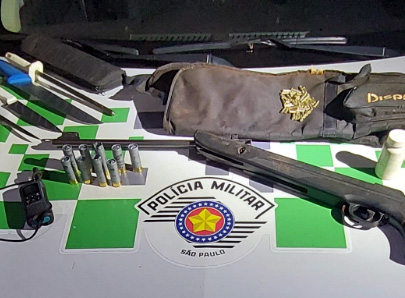 Equipe do 4º Batalhão de Polícia Militar Ambiental, com o apoio de viaturas de Área, prendeu em flagrante um homem com arma de fogo e munições. Ele estava caçando pela área rural de Indiaporã/SP.