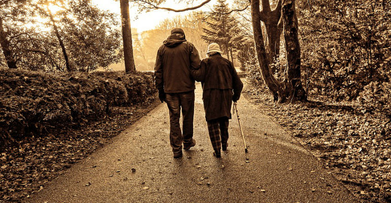 Um homem. Uma mulher. Um casal de velhos. De mãos dadas, enamorados. As mãos seguravam firme, como a dizer que um se constituía no apoio do outro. Assim no físico, assim no afeto.