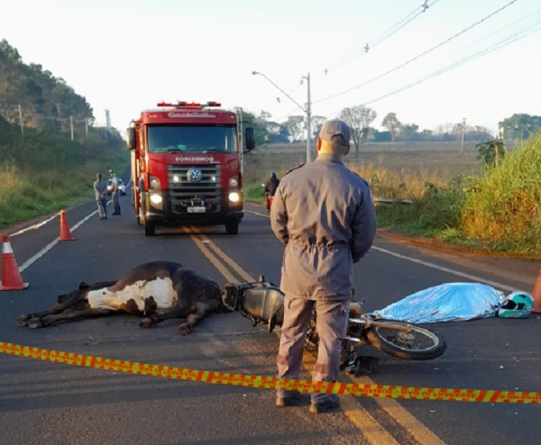 Outro motociclista, de 45 anos e que também não teve a identificação revelada, colidiu com um boi que estava na pista de rolamento. Ele ficou gravemente ferido e acabou falecendo antes da chegado dos resgatistas.