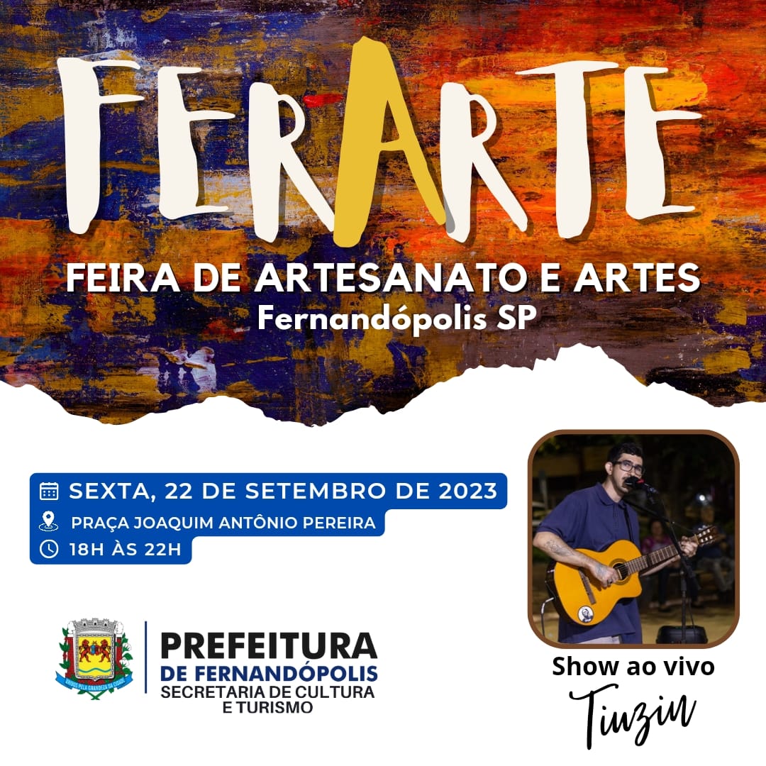 Chegando a sua 3ª edição, a FerArte ocorre na próxima sexta-feira, 22, das 18h às 22h, na Praça Central ‘Joaquim Antônio Pereira’ em Fernandópolis. Reunindo diversos artesãos do município, o evento vai se tornando um grande atrativo turístico e de entretenimento.