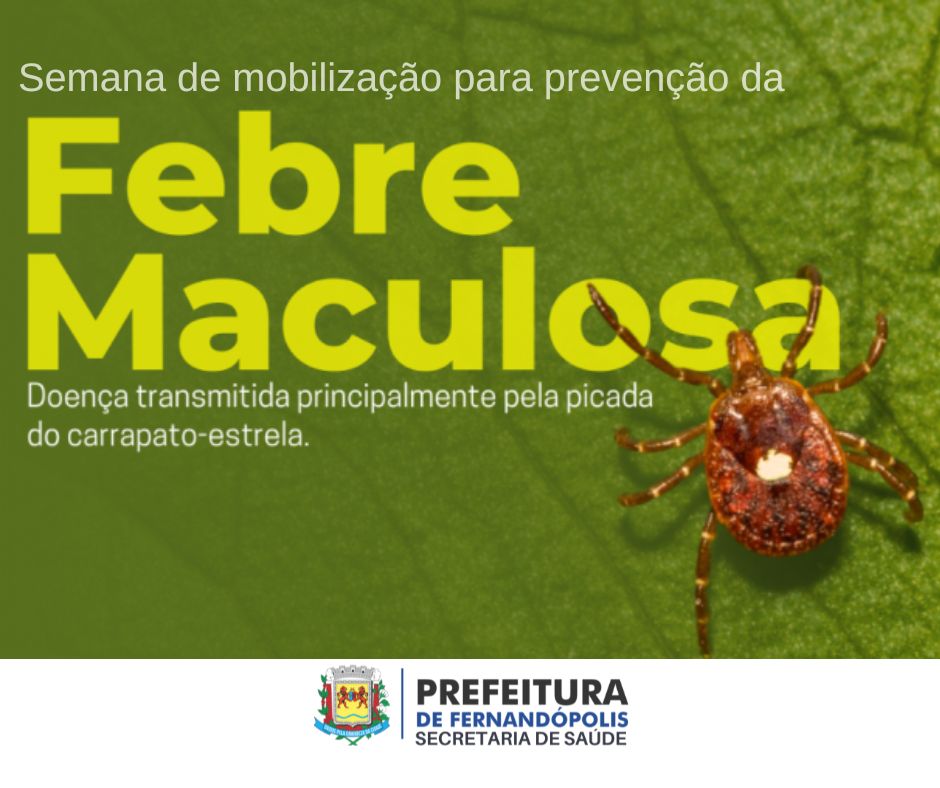 Em pleno período de maior risco de transmissão da Febre Maculosa, doença transmitida pelo carrapato Amblyomma aureolatum (carrapato-estrela, carrapato amarelo do cão), encontrado em cães e gatos que convivem ou frequentam matas, a Prefeitura de Fernandópolis, por meio da Secretaria Municipal da Saúde, realiza um trabalho de mobilização para prevenção da doença.