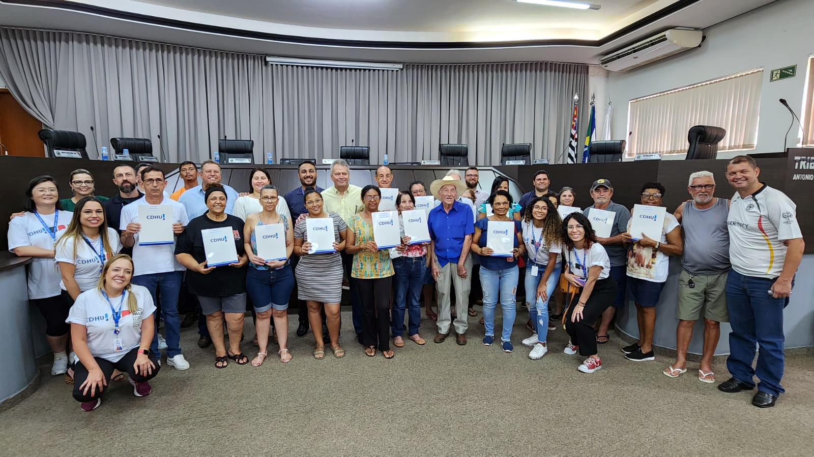 A cerimônia aconteceu no Plenário da Câmara Municipal e contou com a participação da Presidente da Câmara Angélica Oliveira, do Gerente Regional da CDHU de São José do Rio Preto Osvaldo Carvalho, de equipe de profissionais do Programa Cidade Legal, coordenado pela senhora Francisca, do Líder Regional de São José do Rio Preto Rogério Gati, do assessor do Deputado Estadual Itamar Borges Naaman, do assessor do Deputado Estadual Carlão Pignatari , Macarrão, do Engenheiro Civil da Diretoria de Obras Públicas Everton Danilo Garcia Santos, do Agente Municipal de Habitação André Esteves, além de diretores, servidores e dos moradores do Conjunto Habitacional Ouroeste C.