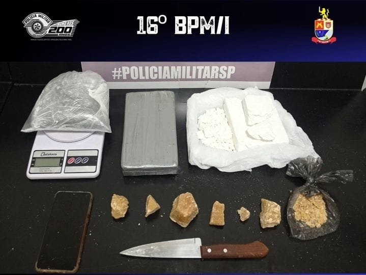 Na mochila foram localizadas 2,3 kg de pasta base de cocaína (que rendem aproximadamente 8.800 porções), 220 gramas de crack (que fracionado rendem 1.140 pedras aproximadamente), uma balança de precisão, uma faca e várias embalagens com resquícios de drogas. Indagado acerca dos fatos, assumiu que estava guardando a droga para pagar uma dívida antiga.