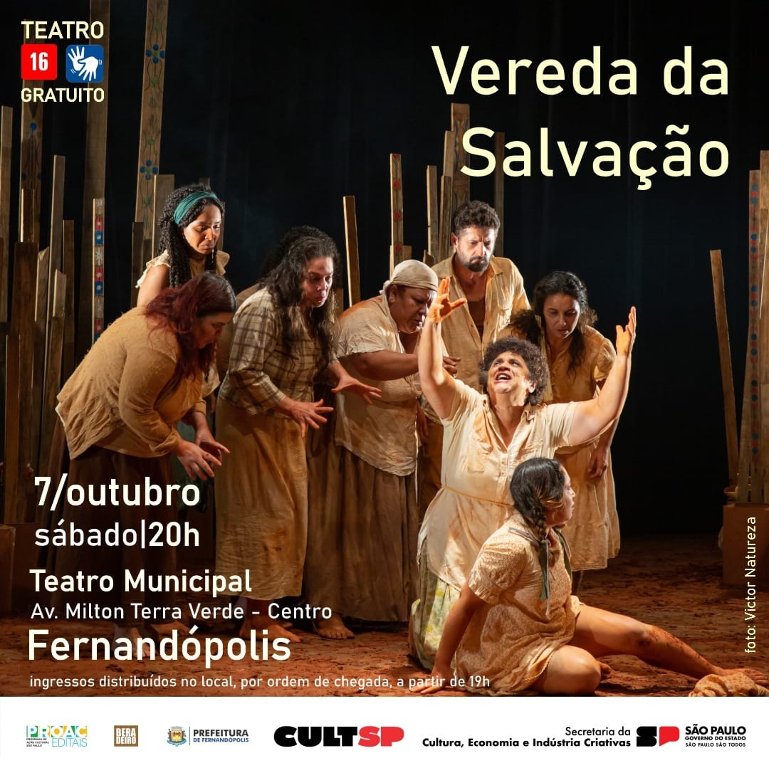Vereda da Salvação é uma incursão cênica na obra homônima de Jorge Andrade, um dos mais importantes dramaturgos brasileiros. O texto, escrito entre 1957 e 1963 é inspirado em um fato verídico ocorrido em 1955 no município de Malacacheta, Minas Gerais, trata de uma comunidade de trabalhadores rurais que, em sua busca por condições de vida minimamente dignas, mergulha no misticismo exacerbado de uma nova crença religiosa que a levará ao caminho da libertação. O espetáculo é resultado de pesquisas sobre o realismo poético de Jorge Andrade e sobre os aspectos fundamentalmente coletivos e sociais desta obra. O Projeto No Rasto de Jorge Andrade é viabilizado pelo ProAC Editais.