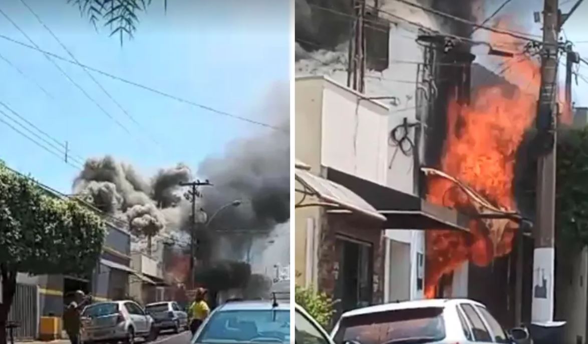 Empresário fica ferido após botijão de gás explodir e incendiar loja