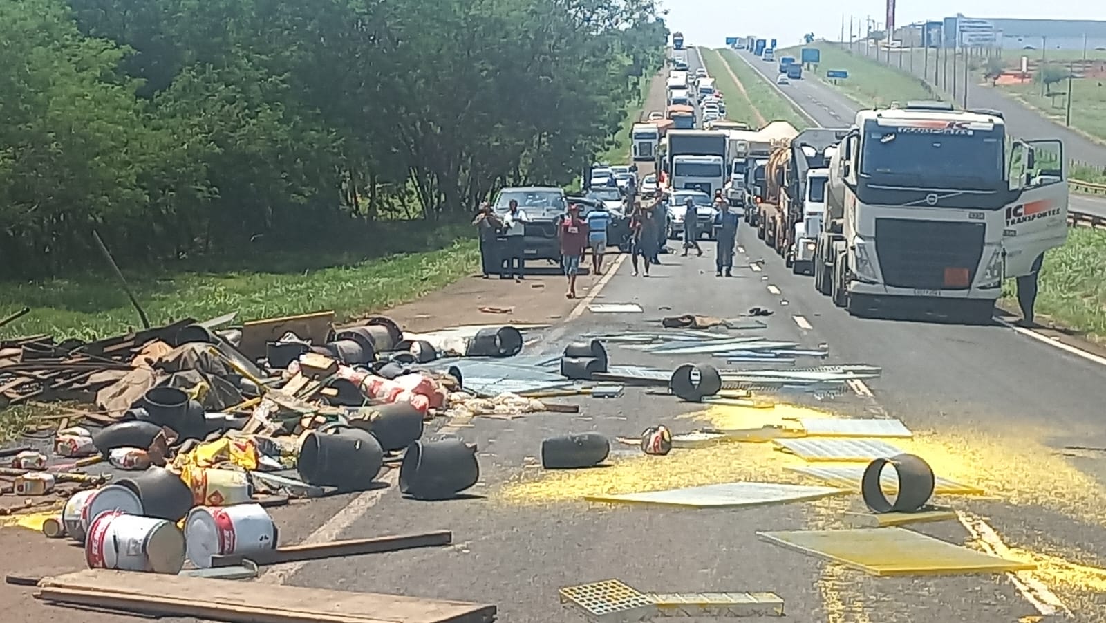 Acidente paralisou parcialmente a via SP-320 na manhã desta terça-feira, 24. Foto: Reprodução / Votunews