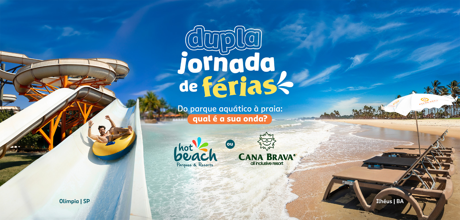O Cana Brava All Inclusive Resort, localizado em Ilhéus, na Bahia, em parceria com o Hot Beach Parques & Resorts, em Olímpia, São Paulo, apresenta a Dupla Jornada de Férias, uma iniciativa inédita que integra experiências de lazer, cultura e gastronomia em dois destinos turísticos de referência. A campanha oferece aos visitantes uma programação completa, pensada para todas as idades, combinando conforto, diversão e experiências exclusivas para toda a família.
