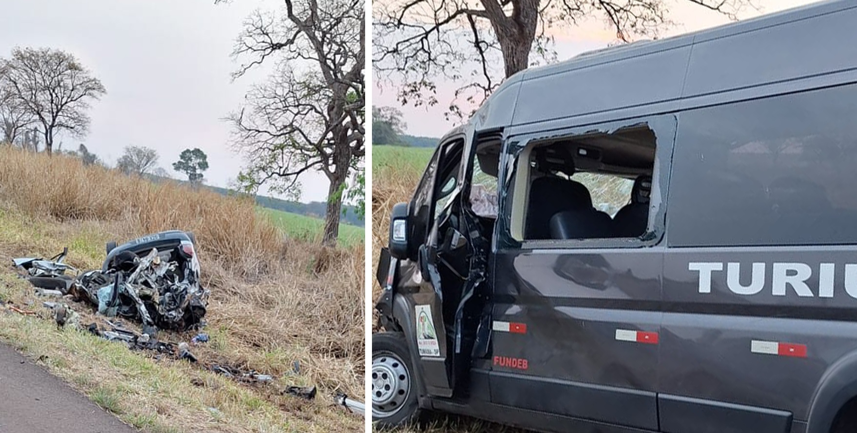 Com o impacto violento, o motorista do Gol, Fábio Rodrigo de Oliveira, e a passageira, Dayabe Coelho Nepumucena, morreram ainda no local. O veículo ficou completamente destruído.