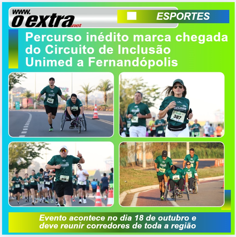 O Circuito de Inclusão Unimed chega a Fernandópolis na próxima semana para sua terceira etapa. O evento será realizado no sábado, dia 18 de outubro, com largada às 17h, e contará com percursos de 5 km de corrida e 3 km de caminhada. As inscrições estão abertas até o dia 15 de outubro e podem ser feitas pelo site www.corridadeinclusao.com.br