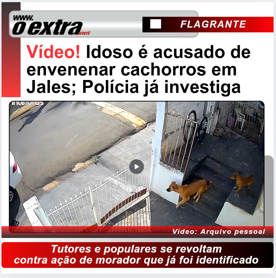 Jales (SP) – Um caso de maus-tratos contra animais chocou a população de Jales nesta semana e gerou grande revolta nas redes sociais. Um idoso, já identificado e conhecido na cidade, foi apontado por moradores como o principal suspeito de ter envenenado diversos cães em diferentes pontos do município.