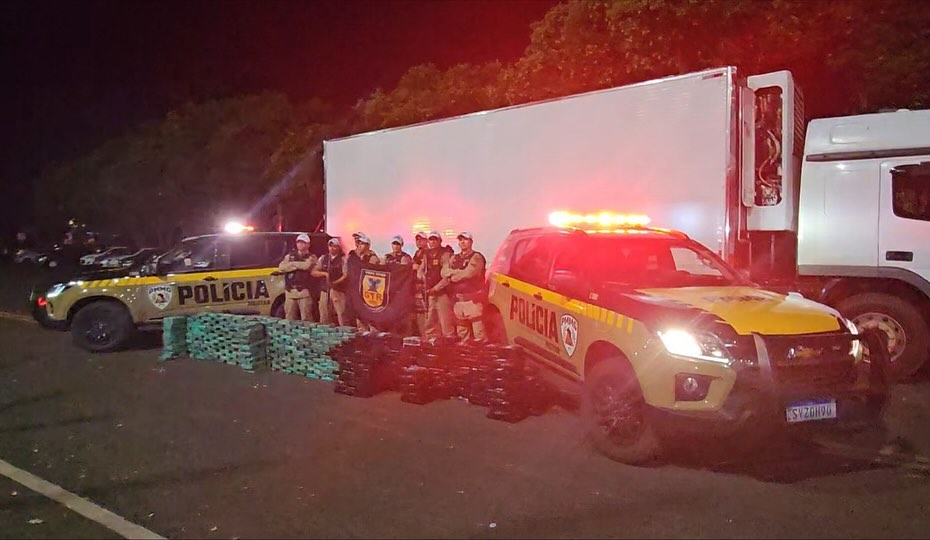 De acordo com o Batalhão de Polícia Militar Rodoviária (BPMRv), a droga foi encontrada dentro de um compartimento oculto no interior de um caminhão frigorífico branco, que transportava uma carga de carne.