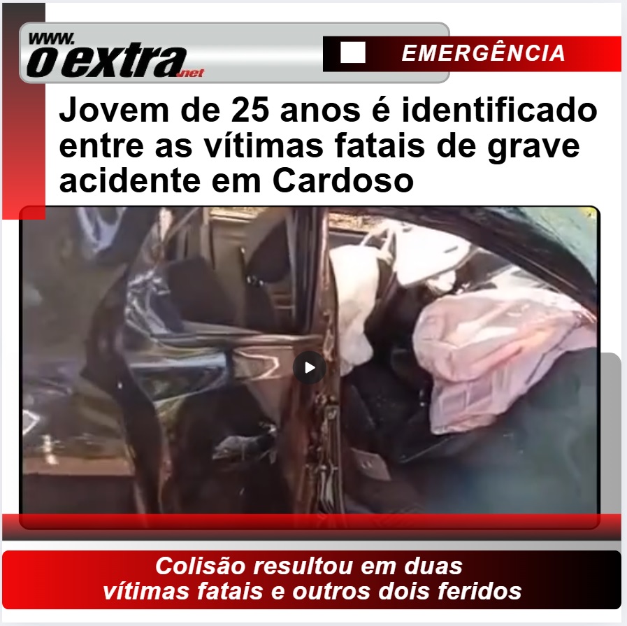 Jovem de 25 anos é identificado entre as vítimas fatais de grave acidente em Cardoso