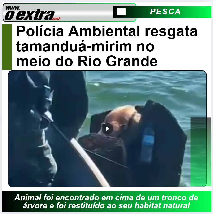 Um tamanduá-mirim foi resgatado por policiais militares ambientais nesta sexta-feira (24), na Represa da Usina Hidrelétrica de Água Vermelha, no Rio Grande, município de Cardoso (SP). O animal foi encontrado à deriva sobre um tronco de árvore, aparentemente exausto e desorientado, durante uma ação de Policiamento Náutico da Operação “Pré-Piracema – modalidade acampamento”.