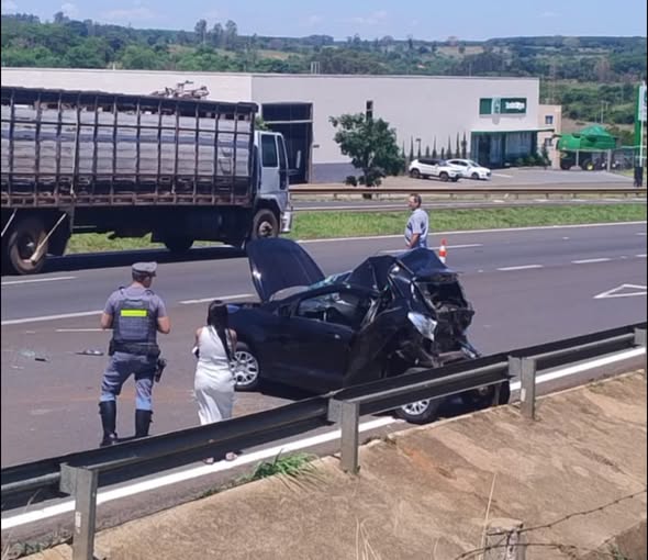 Segundo informações apuradas no local, o acidente envolveu um Ford Ka preto, conduzido por uma mulher moradora de Votuporanga, e um caminhão de carga que trafegava logo atrás.