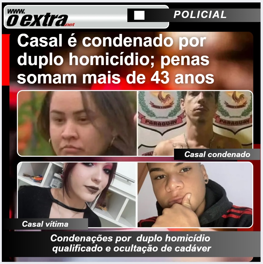 O casal Washington Elias Relíquias de Souza Sarmento, 31 anos, e Kathlen da Silva Ferreira, 26 anos, foi condenado em júri popular realizado nesta quinta-feira (13), em Birigui, pelos homicídios de Jimmy Pereira da Silva, 21 anos, e Caroline Batista Froes, 22 anos, mortos em novembro de 2023. As defesas ainda podem recorrer.