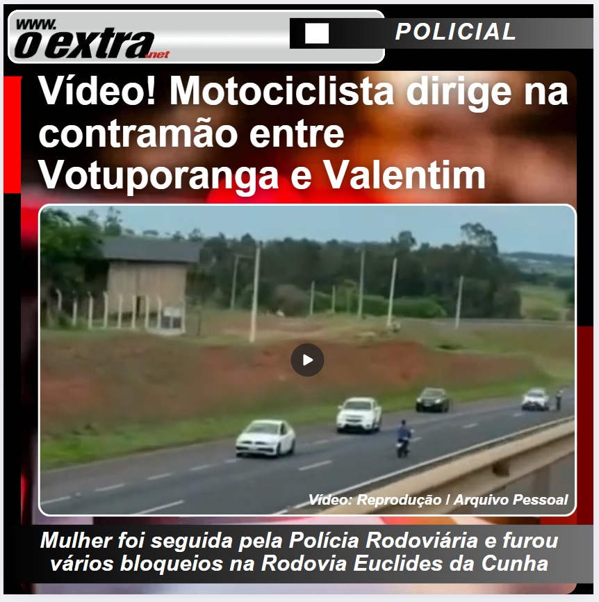 Na manhã desta segunda-feira (17), uma mulher de 36 anos foi flagrada dirigindo na contramão da Rodovia Euclides da Cunha, sem capacete e aparentando tranquilidade, enquanto outros veículos passavam em sentido contrário.