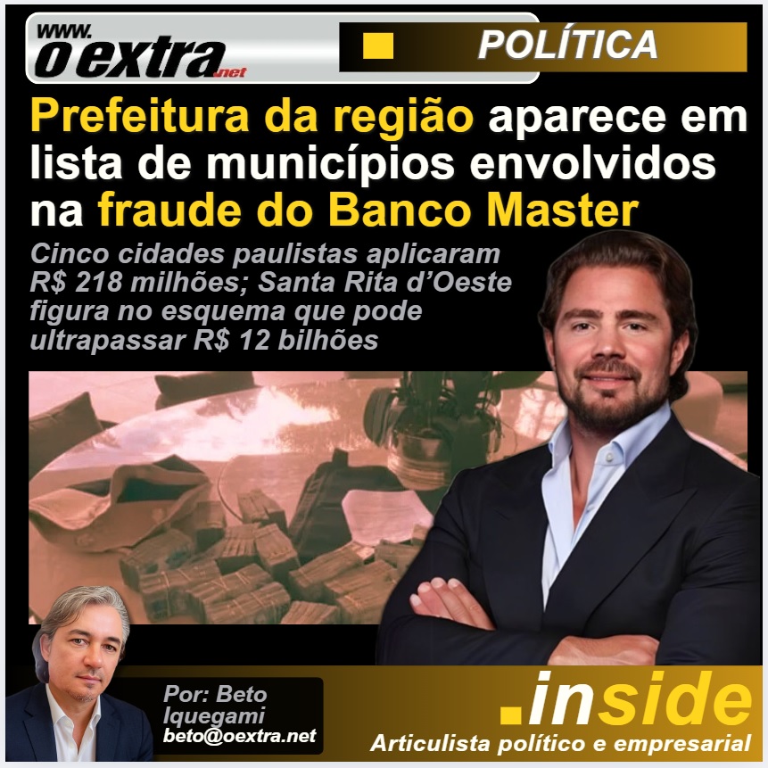 Santa Rita d’Oeste integra o grupo de cinco municípios paulistas que, por meio de seus institutos de previdência, aplicaram recursos no Banco Master, alvo da operação que investiga fraudes que podem ultrapassar R$ 12 bilhões.