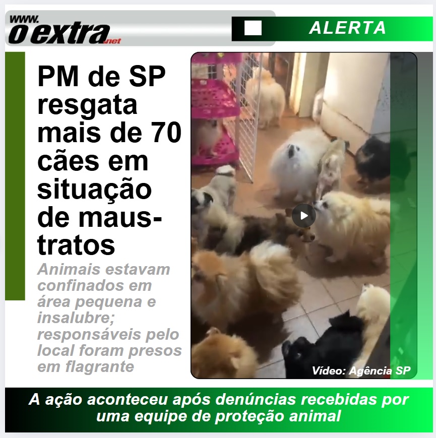 A Polícia Militar resgatou, na quinta-feira (27), 72 cães que eram mantidos em condições insalubres dentro de uma residência em Arujá, na Grande São Paulo. A ação aconteceu após denúncias recebidas por uma equipe de proteção animal, acompanhada por um veterinário, que acionou os policiais ao constatar indícios de maus-tratos no local.