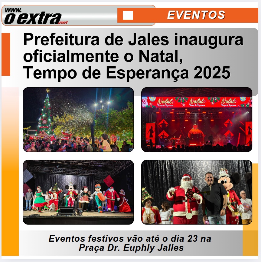 A Prefeitura de Jales realizou, na noite da sexta-feira (28), a emocionante abertura do Natal, Tempo de Esperança 2025, em uma cerimônia simplesmente cheia de alegria e encanto. O evento contou com a presença do prefeito Luis Henrique, da vice-prefeita Marynilda, do secretário de Cultura e Turismo Bruno Altimari, do presidente da Câmara Municipal Bruno de Paula e dos vereadores Andréa Moreto, Eliane Miranda, Elder Mansueli, Luis Especiato, Leandro Bigoto, Franciele Vila e o representante do deputado federal Fernando Marangoni e o deputado estadual Rafael Saraiva, o assessor Anderson Basílio que prestigiaram esse momento tão especial para a cidade.
