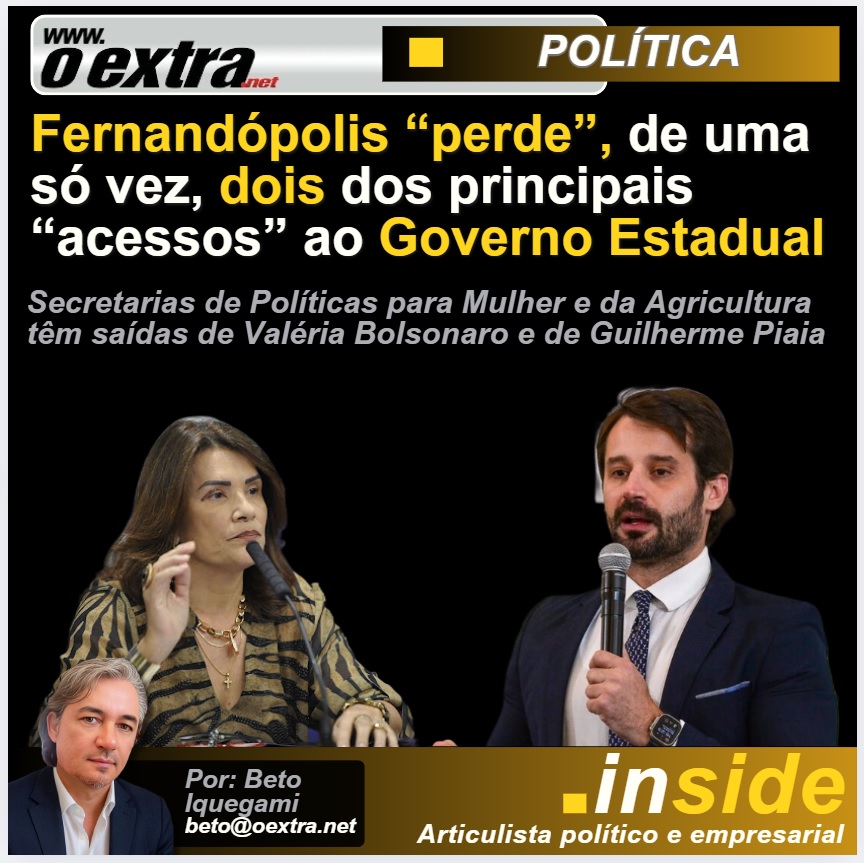 A semana foi pouco favorável a Fernandópolis no âmbito das relações institucionais com o governo estadual. Em um movimento duplo, o governador Tarcísio de Freitas (Republicanos) substituiu duas figuras que, até aqui, eram interlocutores centrais da administração João Paulo Cantarella (PL) na Capital: Guilherme Piai, na Secretaria de Agricultura e Abastecimento, e Valéria Bolsonaro, na Secretaria de Políticas para a Mulher.
