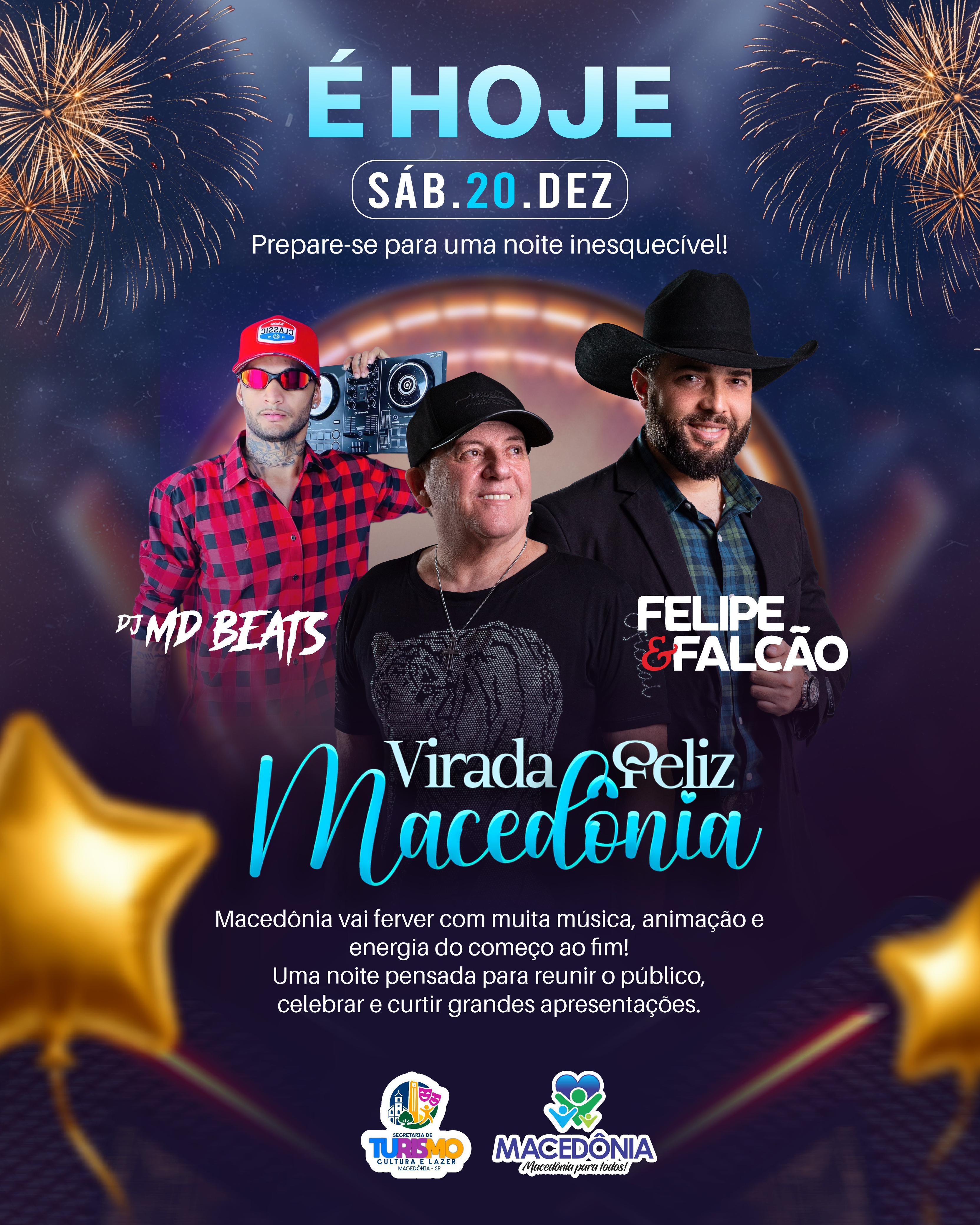A programação da Virada Feliz Macedônia continua neste sábado, 20 de dezembro, com mais uma noite especial de música, animação e confraternização para a população.