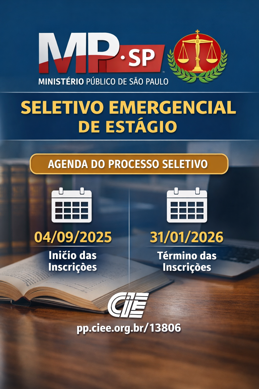 O Ministério Público do Estado de São Paulo (MP-SP) está com inscrições abertas para um novo processo seletivo emergencial e simplificado, destinado à formação de cadastro reserva para eventuais oportunidades de estágio em suas unidades no estado.