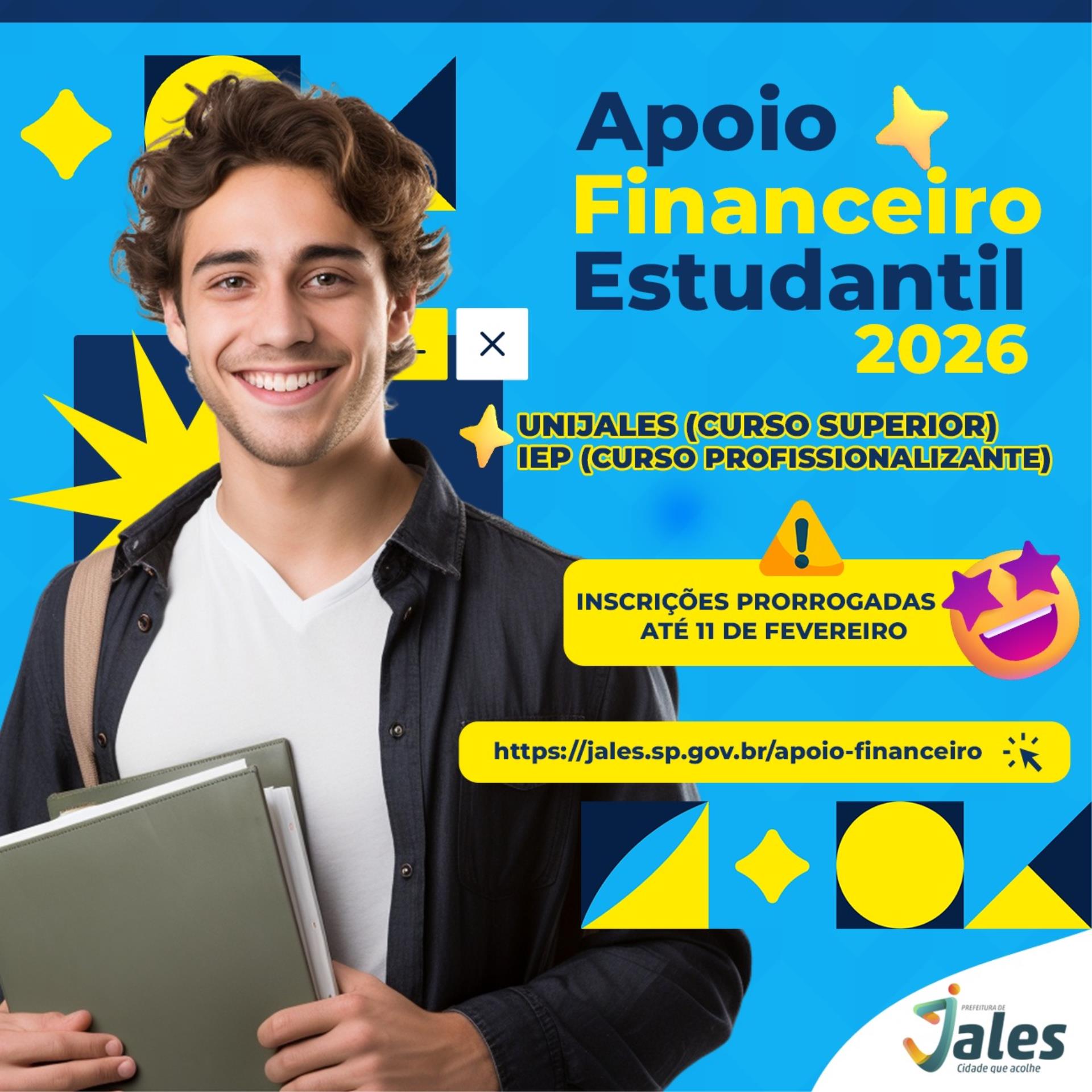 As inscrições para o Apoio Financeiro Estudantil foram prorrogadas pela Prefeitura de Jales, por meio da Secretaria Municipal de Educação. Agora, os estudantes interessados terão até o dia 11 de fevereiro para realizar a inscrição referente ao ano letivo de 2026.
