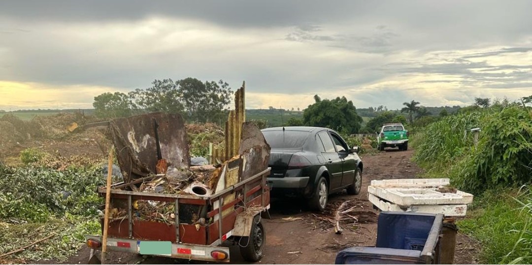 Durante fiscalização realizada no âmbito da Atividade Delegada, a equipe do Policiamento Ambiental flagrou uma tentativa de descarte irregular de resíduos sólidos em local destinado exclusivamente ao depósito de podas de árvores. No local, foi identificado um veículo com carretinha carregada com móveis domésticos, entulho de construção, isopor e outros materiais, que seriam descartados de forma inadequada.