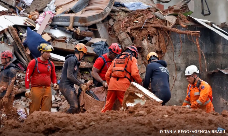 Juiz de Fora (MG), 24/02/2026 - Soldados do Corpo de Bombeiros e voluntários fazem busca e resgate de pessoas em escombros de casas soterradas por lama após fortes chuvas. Foto: Divulgação / Fonte: Tãnia Rêgo/ABr