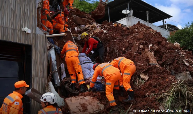 Bombeiros retiram corpo de escombros após fortes chuvas no bairro Cerâmica, na zona sudeste de Juiz de Fora. Foto: Tomaz Silva/ABr