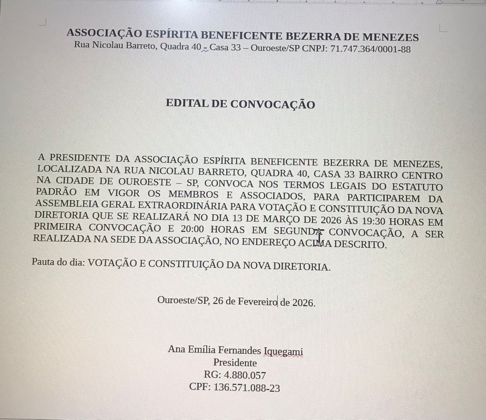 Atos Oficiais: Edital de Convocação de Assembleia Geral Extraordinária