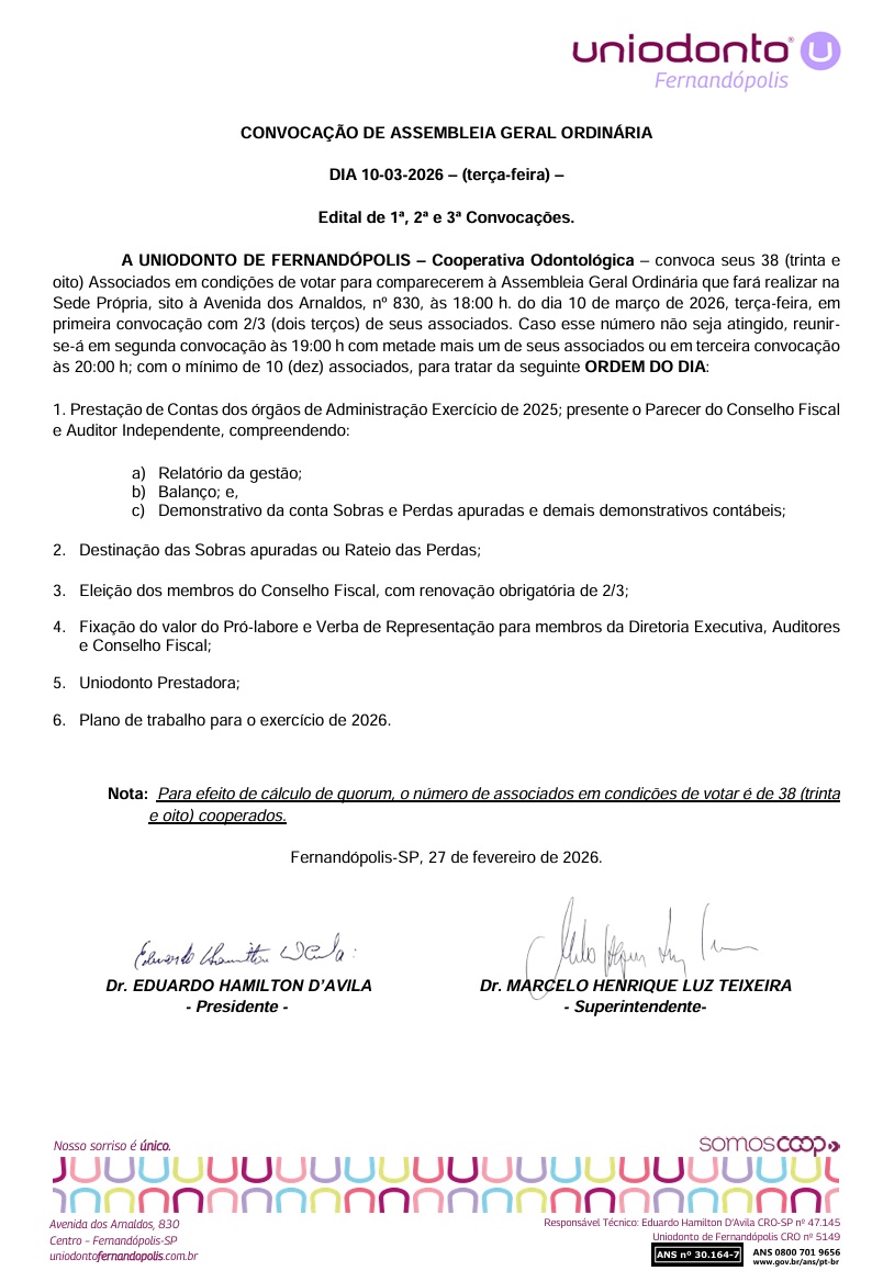 Atos Oficiais: Edital de Convocação Assembleia Geral Ordinária